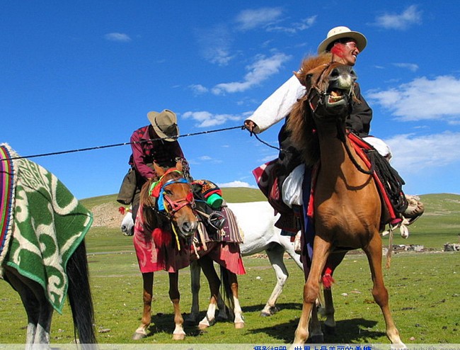 最為引人注目的是牧民的節(jié)日盛裝,特別是少女和中年婦女的穿著,她們大多著華麗昂貴的藏袍,頭上、頸上、手上、腰上到處掛滿了飾品,走起路來叮當作響。尤其是在一年一度熱鬧非凡的恰青賽馬會上,整個羌塘草原的驍勇與彪悍完完全全地展現(xiàn)在白云和藍天之下,那像珍珠一樣撒落在草原上的頂頂帳篷,那像金子般清脆亮麗的陣陣歌聲,以及格薩爾傳說與現(xiàn)代流行歌曲融洽相伴的種種和諧,止不住您也要歌之舞之,唱之頌之。