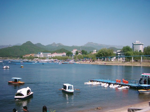 雁棲湖旅游區(qū)距懷柔縣城8公里,因每年春季有成群的大雁、仙鶴等珍禽候鳥在此棲息,故而得名。湖區(qū)氣候宜人,湖水清純碧藍(lán),是開展水上娛樂活動(dòng)和休閑度假的理想場(chǎng)所。雁棲湖三面環(huán)山。北面群山綿亙、重巒疊嶂,萬里長(zhǎng)城隱現(xiàn)其間,西面有紅螺寺,南面有一望無際的華北平原;東岸有元寶山、金燈山。登山遠(yuǎn)眺,藍(lán)天碧水,綠野田園,壯麗景色盡收眼底。