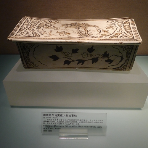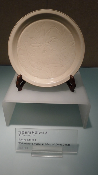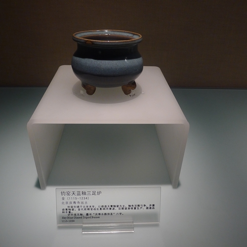 瓷器展廳中展出了北京作為都城歷史時(shí)期出土和傳世的瓷器170組件,青花釉里紅海水云龍紋天球瓶在2000年就已價(jià)值1000萬(wàn)元。另外宋遼金時(shí)期的定窯白釉童子誦經(jīng)壺、元大都出土的青花鳳首扁壺、乾隆松石綠地粉彩蕃蓮紋多穆壺等名貴瓷器都是難得一見(jiàn)的稀世精品。展廳中還列有明成化斗彩葡萄紋杯,這對(duì)葡萄紋杯與雞缸杯為同時(shí)期作品,都是明代官窯的代表作,而雞缸杯只有一只,葡萄紋杯是一對(duì),這對(duì)杯子是在清初重臣索尼7歲孫女的墓中出土的。