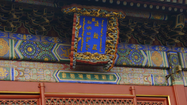 雍和宮(The Lama Temple)位于北京市區(qū)東北角,清康熙三十三年(1694年),康熙帝在此建造府邸、賜予四子雍親王,稱雍親王府。雍正三年(1725年),改王府為行宮,稱雍和宮。雍正十三年(1735年),雍正駕崩,曾于此停放靈柩,因此,雍和宮主要殿堂原綠色琉璃瓦改為黃色琉璃瓦。又因乾隆皇帝誕生于此,雍和宮出了兩位皇帝,成了“龍潛福地”,所以殿宇為黃瓦紅墻,與紫禁城皇宮一樣規(guī)格。乾隆九年(1744年),雍和宮改為喇嘛廟,特派總理事務王大臣管理本宮事務,無定員??梢哉f,雍和宮是全國規(guī)格最高的一座佛教寺院。