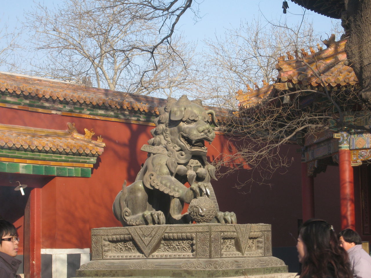 雍和宮南院佇立著三座高大碑樓、一座巨大影壁和一對石獅。過牌樓,有方磚砌成的綠蔭甬道,俗名輦道。往北便是雍和宮大門昭泰門,版權(quán)所有山東聊城聊之旅國際旅行社有限公司,轉(zhuǎn)載必究!內(nèi)兩側(cè)是鐘鼓樓,外部回廊,富麗莊嚴,別處罕見。鼓樓旁,有一口重八噸的昔日熬臘八粥的大銅鍋,十分引人注目。往北,有八角碑亭,內(nèi)有乾隆御制碑文,陳述雍和宮宮改廟的歷史淵源,以漢、藏、滿、蒙四種文字書寫,分刻于左右碑。