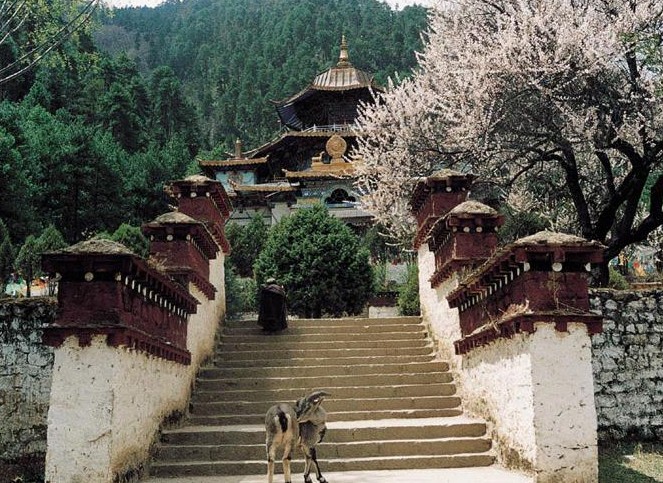喇嘛嶺寺位于西藏林芝地區(qū)所在地八一鎮(zhèn)東南三十公里處的森林包圍的山坳里。喇嘛嶺寺的金頂與翠綠的松柏交相輝映。寺院經(jīng)堂和僧舍四周,各種顏色的菊花、格?;幭喽菲G,鐃跋聲、鈴鼓聲以及渾厚而又清脆的誦經(jīng)聲回蕩在山谷。這座建于上個世紀(jì)三十年代末的古剎,屬藏傳佛教四大教派之一的寧瑪派(俗稱紅教)寺廟。