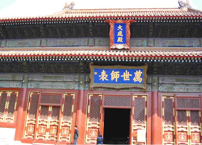 中國(guó)元、明、清三朝祭祀孔子的場(chǎng)所。在北京東城區(qū)國(guó)子監(jiān)街。元大德六年(1302)建,大德十年建成。明永樂九年(1411)重建。宣德、嘉靖、萬(wàn)歷年間分別修繕大殿,添建崇圣祠, 清順治、 雍正、 乾隆時(shí)又重修, 光緒三十二年(1906)升祭祀孔子為大祀,將正殿擴(kuò)建??讖R雖然經(jīng)過(guò)歷代重修, 但其結(jié)構(gòu)基本上仍然保存元代風(fēng)格。