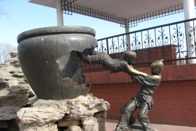 標題:《司馬光砸缸》 材質:青銅 高度:1.6米 作者:張大生