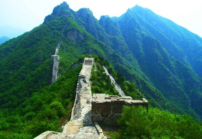 遇見(jiàn)倒塌的路段要繞出長(zhǎng)城,在城墻的石縫里插上樹(shù)枝做梯子,再爬墻進(jìn)去;天梯是一段70度陡坡、70-80米長(zhǎng)的長(zhǎng)城,最窄處60公分寬,臺(tái)階40-50公分高、15公分臺(tái)面,要四肢并用地爬;鷹飛倒仰有一處長(zhǎng)城直立倒塌,要南轅北轍地繞道迂回過(guò)去,下山70-80度陡坡,要不抓住樹(shù)枝,很難站??;北京結(jié)到望京樓一段在長(zhǎng)城里,東側(cè)是城墻,西側(cè)是灌木,沒(méi)有臺(tái)階,非常難走。上不去下不來(lái)的滋味不好受,建議大家在高度的團(tuán)隊(duì)合作下共同完成。攀登用時(shí)單程2-3小時(shí)。