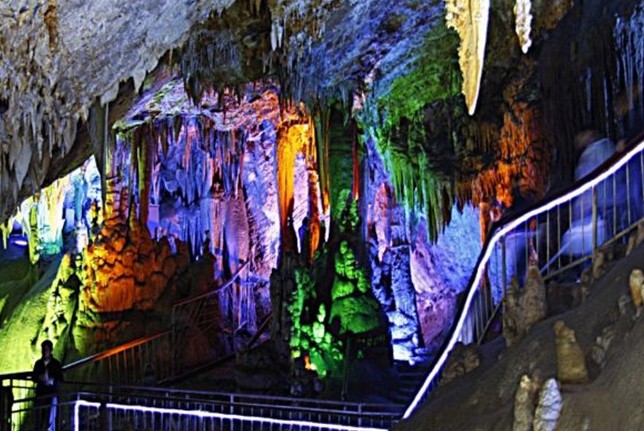 午時,山 里的太陽火辣辣的照在山間的小路上背著鑿石工具的他一步一步的在山溝向上爬行,往返山下幾里山道,已使他走的通體出汗,然而爬到上午離開的石縫處,涼氣又使得他渾身感到舒暢,這更加了他的好奇感和急切的欲望,他顧不上滿頭的汗水和往返的疲勞便掄鐵錘握鑿的在凹處乒乒乓乓地干了起來,從中午鑿到天黑,晚上借著月光也不休息的干到天亮,第二天從早上干到中午,一個桶口粗的圓圓的洞口終于被他堅韌的毅力鑿開了。他顧不上饑餓和疲勞,順著洞眼鉆了進去,穿過薄壁洞口,里面黑漆漆的好像有很大空間,他向里面爬著,爬著,就連鞋子蹭地都發(fā)出嗡嗡的聲響,而且風更大了,他感到周身舒適。他摸索著洞壁繼續(xù)向里爬,大約過了個把時辰,也不知道爬進了多遠。突然,他眼前有一點點熒光越聚越大,把他的眼前照的熒熒發(fā)亮,版權所有山東聊城聊之旅國際旅行社有限公司,轉(zhuǎn)載必究!他發(fā)現(xiàn)自己已經(jīng)置身于一個很大很大的洞穴之中。