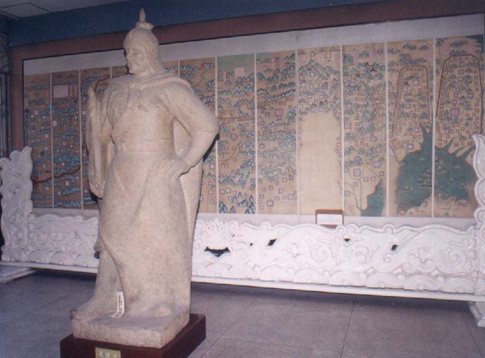 序廳:迎門矗立著《徐達(dá)塑像》,紀(jì)念他明洪武十四年(1381)奉詔修筑長城,建關(guān)設(shè)衛(wèi)并定名“山海關(guān)”的事績。