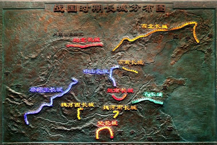 長城歷史廳:以《半坡壕塹》模型展示7千年前,氏族部落人們圍繞居住區(qū)挖掘的圍溝,用以防洪阻獸,保護(hù)氏族安全,起著墻與城之作用。文字與照片說明長城起源于春秋戰(zhàn)國時(shí)期。隨著戰(zhàn)爭規(guī)模的擴(kuò)大,兵器種類的更新,秦、漢、金、明各代修筑的長城遠(yuǎn)袤萬里。