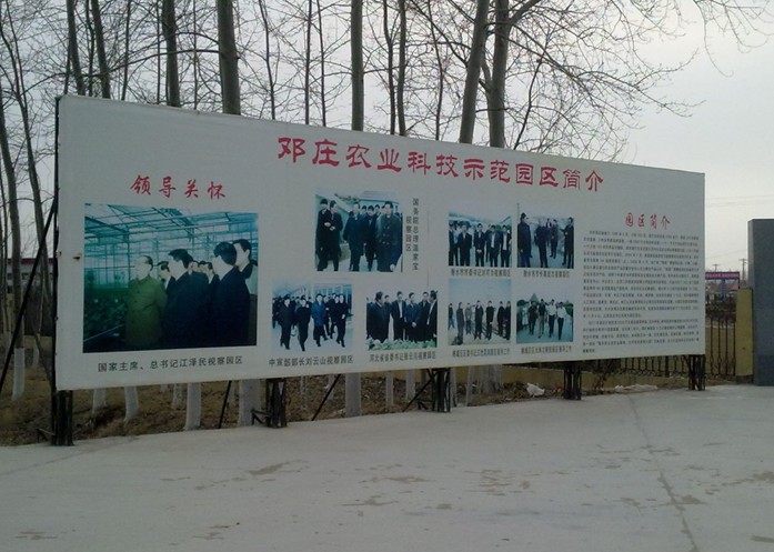 鄧莊農業(yè)科技示范園區(qū)始建于1998年6月,占地500畝,建成高級日光溫室150棟,全智能連棟溫室2棟,并建成工廠化育苗中心、無公害檢測中心、組織培養(yǎng)中心、肉奶牛胚胎移植中心、技術人才培訓中心、凈菜加工配送中心六個中心。2001年,鄧莊園區(qū)被認定為省級農業(yè)科技示范園區(qū)、河北省無公害蔬菜生產基地、河北省進京蔬菜生產供應基地。