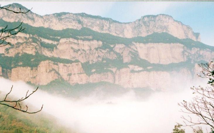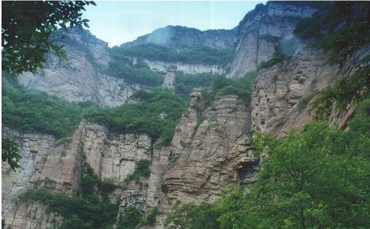 如果誰(shuí)要是不知“層巒疊嶂”這個(gè)詞的確切含義,就到嶂石巖去讀吧。它的山巒成三疊,每一疊都如紅色屏 嶂石巖風(fēng),高一二百丈,廣數(shù)里,石壁光滑如磨,纖草不生,飛鳥(niǎo)難落,猿猴難攀。每?jī)莎B間錯(cuò)落成平臺(tái),樹(shù)茂草豐,呈綠色環(huán)帶。