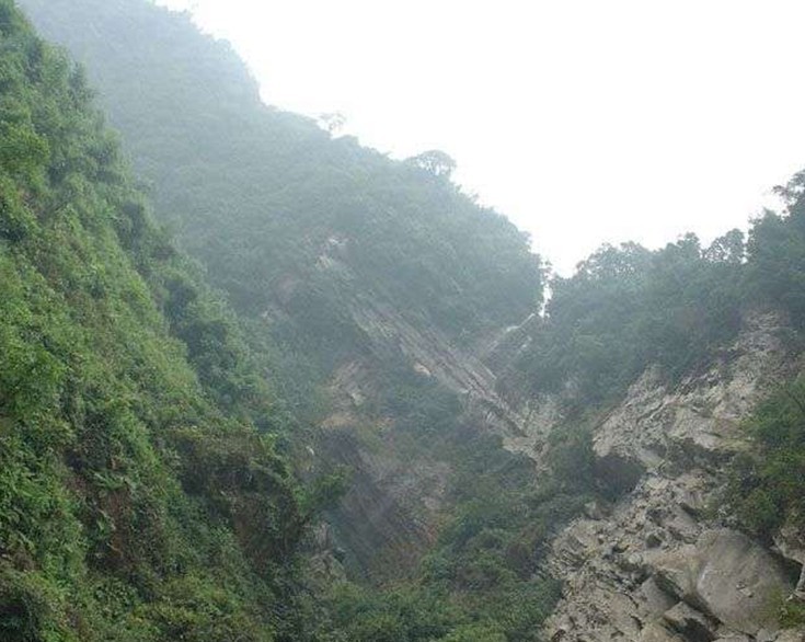 聚仙谷全谷長(zhǎng)2500米,西南東北走向,逐步成梯形到頂峰海拔600米。溝深山險(xiǎn),兩邊巖壁如刀削一般,巖高數(shù)十丈,溝底巖閑上,長(zhǎng)有老榆、銀杏、白臘、黑棗各種一尺多粗的古樹(shù),巖壁上長(zhǎng)有多年生長(zhǎng)的喬灌木植物,溝內(nèi)有各種名貴藥材,夏季有清泉溪水下游,游人從溝底仰頭望天,只見(jiàn)一條藍(lán)線,故一線天之稱。
