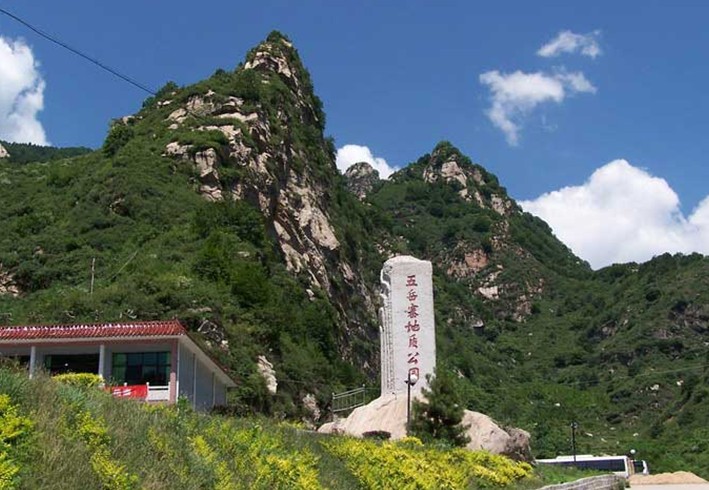 本區(qū)在地質(zhì)構(gòu)造上屬于華北古陸太行山中段東麓,區(qū)內(nèi)廣泛出露中、下元古界變質(zhì)巖系,其巖性主要為片麻巖、變粒巖、角閃片巖、斑狀花崗巖等。由于新生代喜馬拉雅運(yùn)動的強(qiáng)烈抬升和差異斷塊活動。造成了平的華北平原(海拔幾十米)與高聳的太行山的強(qiáng)烈對比,形成了一系列相對高差較大的陡峭山峰,本公園就處在由古老變質(zhì)巖基礎(chǔ)上發(fā)育起來的斷塊中山地區(qū),海拔1000-2150米,由于斷塊構(gòu)造形成了景區(qū)內(nèi)山地溝深坡陡、山勢雄奇險秀,峽谷多而幽險。五岳寨主峰呈五峰獨(dú)立之勢,如一組巨大的盆景被太行山當(dāng)胸托起。主峰1946.5米,最低峰亦1880米以上。山勢陡峻、雄險,東南側(cè)陡崖壁立,直垂谷地深達(dá)數(shù)百米。僅十幾平方米的頂峰巖石平臺,三面臨萬丈絕壁、奇險無比。站在峰頂極目四望,蒼茫中天地一色,千山萬嶺盡收眼底,讓人真正體會到“會當(dāng)凌絕頂,一覽眾山小”的境界。五岳寨地質(zhì)資源豐富,山形地貌奇特,猴頭峰、石駝峰、鴛鴦石、將軍石等許多山峰奇形怪狀,擬人似獸、栩栩如生。