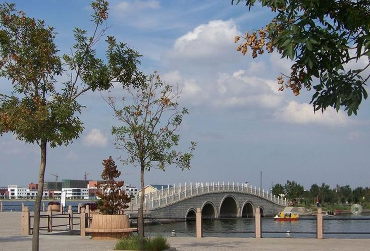 清風(fēng)湖公園占地2690畝,湖面水體面積1200畝,以黃河文化為主題,在建設(shè)風(fēng)格上,吸收借鑒了西方園林和中國(guó)古典園林的設(shè)計(jì)手法,力求中西合璧,用現(xiàn)代手法來表現(xiàn)傳統(tǒng)建筑。