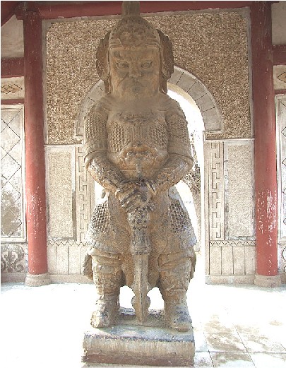南皮文保所院內(nèi),有一金剛亭。亭內(nèi)二金剛,青石雕刻,線條細(xì)膩,狀貌威武,是有名的石雕精品。 過去南皮城內(nèi)有一座名冠全縣的著名禪林——興化寺,它坐落在城內(nèi)東北角,位于現(xiàn)在土產(chǎn)公司家屬院一帶。此寺始建年代不詳,一說為北魏,一說為唐代,尚待進(jìn)一步考證。重修是在明朝弘治七年(1504)。版權(quán)所有山東聊城聊之旅國際旅行社有限公司,轉(zhuǎn)載必究!據(jù)說城東唐房里有個叫湯澄的人樂善好佛,曾游于興化寺,見敗垣殘壁一片荒涼,遂親自捐資,并向大戶募化,志在重修,數(shù)載始成。興化寺規(guī)模宏偉壯麗,成為南皮著名寺院。 興化寺以石金剛殿為山門。兩個金剛相向分立于殿之左右,下有石座相連,連座高一丈二尺,圍可合抱,雕刻玲瓏。金剛神色肅穆,身披鎧甲,狀似武將。左者胸前橫锏,雙手合十,右者雙手扶锏拄地。每像一只鼻孔。相傳為唐代所雕刻,建寺之初,從寺前水坑挖得,置于山門之內(nèi)。 寺內(nèi)主建筑為大慈閣,中曾羅列十八羅漢,正中為千手千眼銅佛,上懸“慈云永護(hù)”匾額,為清代狀元張之萬題撰。左懸“福佑臺山”匾,版權(quán)所有山東聊城聊之旅國際旅行社有限公司,轉(zhuǎn)載必究!右懸“登臨近日”匾,均未署名,據(jù)說是明人手筆。閣內(nèi)楹聯(lián)有二:一為清代道光時期南皮一縣令所題“我只有一片婆心,抱個孩兒與你;汝須行萬般好事,積些功德與他”。二為南皮孝廉張之京題撰:“金剛怒目,菩薩低眉,一鼻孔呼吸相通,證果在三生石上;閣建大悲,寺名興化,千眼中光明普照,法身現(xiàn)百尺樓頭。” 最上層神龕中,有菩薩一尊。上懸光緒十四年九月御制“道達(dá)人天”匾。閣前關(guān)帝廟,廟中有關(guān)羽銅像,綠銹斑駁,氣象凜然。 清末以來,連年戰(zhàn)亂,以至寺毀閣塌,解放后僅存石金剛兩尊,河北省將其列為省重點文物,1964年于興化寺舊址前建亭保護(hù)。 興化寺的巍峨壯麗和旺盛香火,只能從所存的石金剛中去想像了,而南皮石金剛到底什么時候雕刻?為什么出自水坑?也留下了千古謎團(tuán)。