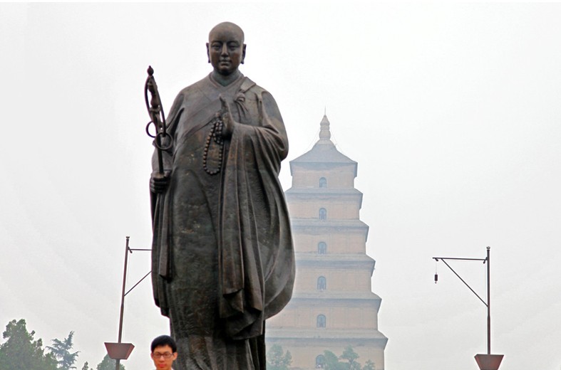 新建的占地20多畝的以玄奘為主題的大雁塔南廣場位于大慈恩寺門前,廣場中央臺座上,坐落著一尊高大的唐僧取經(jīng)銅像,花壇錦簇,華燈成行,馬路寬闊,設施齊備。大慈恩寺大雁塔有著一千多年的光輝歷史,曾有過輝煌的一頁,據(jù)史書記載:唐貞觀二十二年(648年),大慈恩寺建成后,皇太子李治恭請玄奘任該寺上座,寺中專為玄奘辟有翻經(jīng)院,供其翻譯佛經(jīng)。為了協(xié)助玄奘譯經(jīng),還特地選擇了50名高僧作為玄奘的助理。玄奘由原來居住的弘福寺移居大慈恩寺時,舉行了隆重的儀式。玄奘與50名助理乘車,京城僧眾列隊隨后,文武百官侍衛(wèi)陪同,太宗皇帝與太子李治及后宮嬪妃在安福樓上手持香爐目送,長安各界人士夾道歡呼。