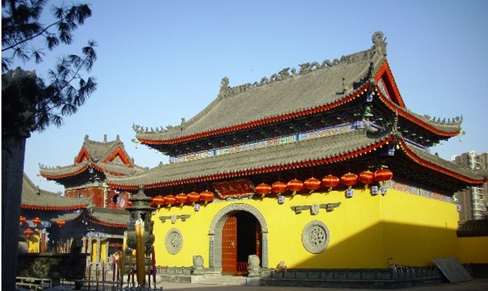 寺院坐北朝南,三層院落,占地三十余畝。前為山門(mén),門(mén)楣上懸掛“大法禪林”匾額。山門(mén)內(nèi)塑有哼哈二將,氣象威猛,形體高大,翹首望之,始見(jiàn)其面。東西兩側(cè)建有鐘樓、鼓樓。中為天王殿,內(nèi)塑四大天王巨像,版權(quán)所有山東聊城聊之旅國(guó)際旅行社有限公司,轉(zhuǎn)載必究!后為大殿供奉釋迦牟尼、菩薩諸佛。配殿供奉千手千眼佛及魔家四將。寺內(nèi)整個(gè)建筑為棕門(mén)灰墻碧瓦,三層大殿高聳巍峨,畫(huà)棟雕梁,窮極壯麗。在清代古寺興盛時(shí)期,僧侶云集,有僧百余人,是沈陽(yáng)重要禪林之一??上Ъ壮饺斩碇畱?zhàn),毀于兵亂之中,古跡蕩然?,F(xiàn)寺院內(nèi)僅存殿堂兩座,為工廠所用。