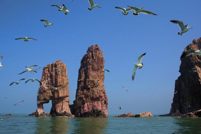 島上大樹、小草、灌木叢漫無目的地長(zhǎng),和緩的山坡上種植著各種農(nóng)作物,鄉(xiāng)間小路崎嶇蜿蜒,路邊的野花自由而放肆地開放。隨便走走,就能看見幾處極好的天然浴場(chǎng),不遠(yuǎn)的礁石上成群的海鷗或嬉戲或盤旋。親近黃海明珠,體會(huì)海島自然,享受垂釣生活。