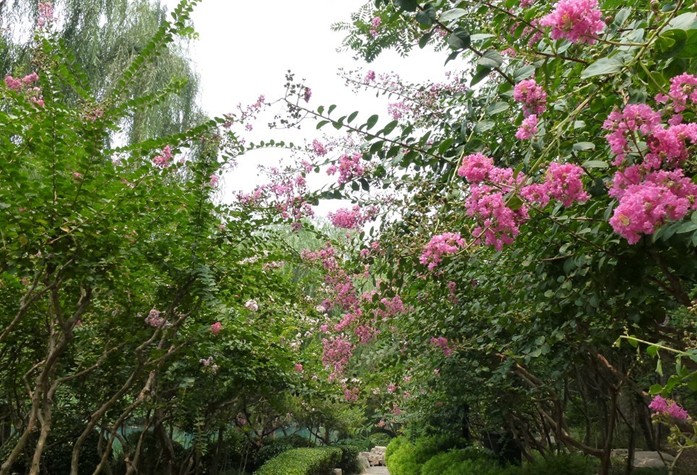 濟(jì)南市環(huán)城公園建在護(hù)城河沿岸,全長(zhǎng)6.26公里。以優(yōu)美典雅的園林建筑和碧水翠,把趵突泉群、珍珠泉群、黑虎泉群、五龍?zhí)度杭?ldquo;天下第一湖”——大明湖連接在一起,形成了以湖心泉水為特色的園林綠化中心,使“四面荷花三面柳。一城山色半城湖”的景色更加秀麗。環(huán)城公園東護(hù)城河沿線為四季花園,自北向南依次為冬景園、春景園、夏景園和秋景園。