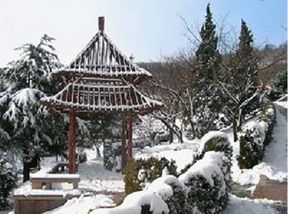 沿園中石砌游路或乘坐太平山索道,可從地面或空中觀賞植物園的優(yōu)美景色。山南坡是挺拔蒼翠、郁郁蔥蔥的雪松林。西坡是花木的主要繁殖基地,這里有許多國家的名貴花木,有一些還是瀕危品種。半坡上有一片櫻花盛開的大花園。山腳下的耐冬園里耐冬苗木蔚然成林。暖春時節(jié),紅艷艷的花朵堆滿枝頭,與旁邊的白玉蘭相互映襯,常令游人駐足觀賞。