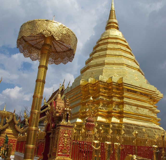 清邁古城門(mén)附近可見(jiàn)眾多舊佛寺和各色紀(jì)念碑。最接近市區(qū)而值得參觀之處是雄踞山峰的雙龍寺(WatPhrathatDoiSuthep)和泰皇夏日行宮(PhupingPalace)。清邁博物館也值得一覽,館內(nèi)珍藏著大量文物,可追溯到孟萊王、素可泰時(shí)代