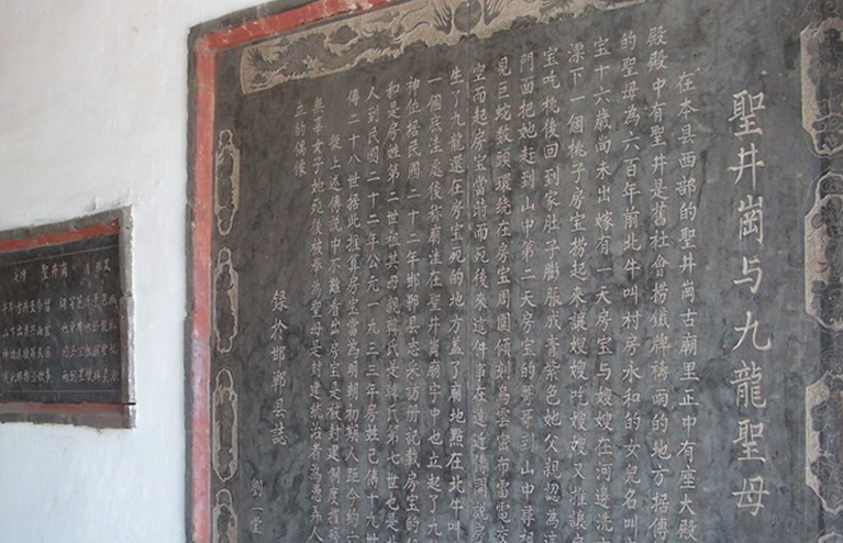 圣井崗龍神廟供奉的是九龍圣母。據(jù)傳,圣母為600多年前邯鄲縣北牛叫村房永和的女兒,名為房寶。一日,房寶與嫂子在河邊洗衣,版權(quán)所有山東聊城聊之旅國(guó)際旅行社有限公司,轉(zhuǎn)載必究!見水上一桃漂來,鮮艷誘人,撈予其嫂,嫂子又回讓房寶。豈料吃下桃子后沒多久,房寶懷孕了。未婚先孕被看作不守婦道、有辱門庭,房寶被其父逐出家門。次日,其兄入山尋妹回來后說,在山上見有數(shù)條巨蛇盤旋在房寶周圍 ,傾刻間狂風(fēng)突起,雷電交加,巨蛇騰空而去,房寶也不見了蹤跡。事情傳開后,人們都說房寶是“圣母”,生了九龍子。九子為:九龍、蒼龍、金龍、焦龍、黃龍、黑龍、火龍、青龍、白龍。后圣井崗廟宇中立起了“九龍圣母”的神位。