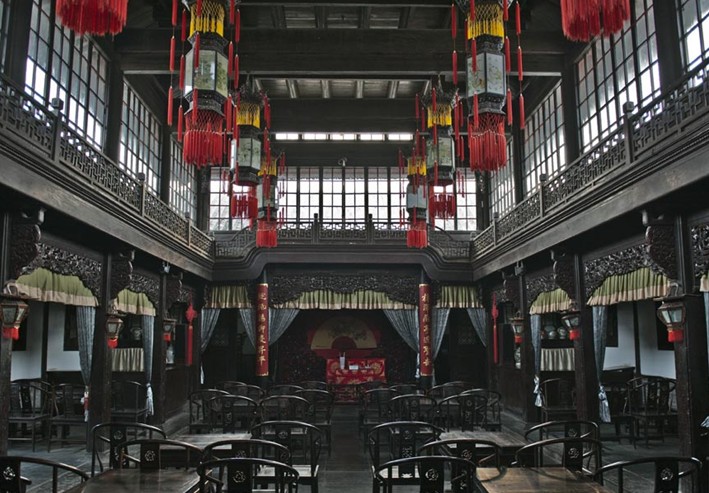 進(jìn)入大門(mén)即是一條寬闊的長(zhǎng)長(zhǎng)的甬路,構(gòu)成大院的中軸線,甬路上有形式各異、建筑精美的5座門(mén)樓。從南向北門(mén)樓逐漸升高,寓意為“步步高升”,而每道院門(mén)都是3級(jí)臺(tái)階,寓意為“連升三級(jí)”。道路東西兩邊各有五進(jìn)院落。東院為內(nèi)宅,有內(nèi)賬房、候客室、書(shū)房、鴛鴦廳、內(nèi)眷住房等,現(xiàn)在陳列著楊柳青年畫(huà)、泥塑、木雕、磚雕及天津民俗,細(xì)細(xì)觀覽,十分有趣。西邊的院落為接待貴賓的大客廳、暖廳、大戲樓、祠堂等,現(xiàn)已基本恢復(fù)了原有陳設(shè)。與內(nèi)宅相比,這里建筑用材更為考究,做工更為精細(xì)。大客廳院內(nèi)有高近5米的大天棚,可擋風(fēng)避雨,當(dāng)年從鎮(zhèn)外很遠(yuǎn)就能看到。版權(quán)所有山東聊城聊之旅國(guó)際旅行社有限公司,轉(zhuǎn)載必究!大戲樓寬敞華麗,可供200人聽(tīng)?wèi)蝻嬔?,是華北民宅中最大的戲樓,京劇名家孫菊仙、譚鑫培等都曾在此獻(xiàn)藝,其中花靈格扇全部是楠木原色,精雕細(xì)刻,極為華貴。西院的西邊還有三進(jìn)院落,是私塾先生教書(shū)及其他的專(zhuān)用房。