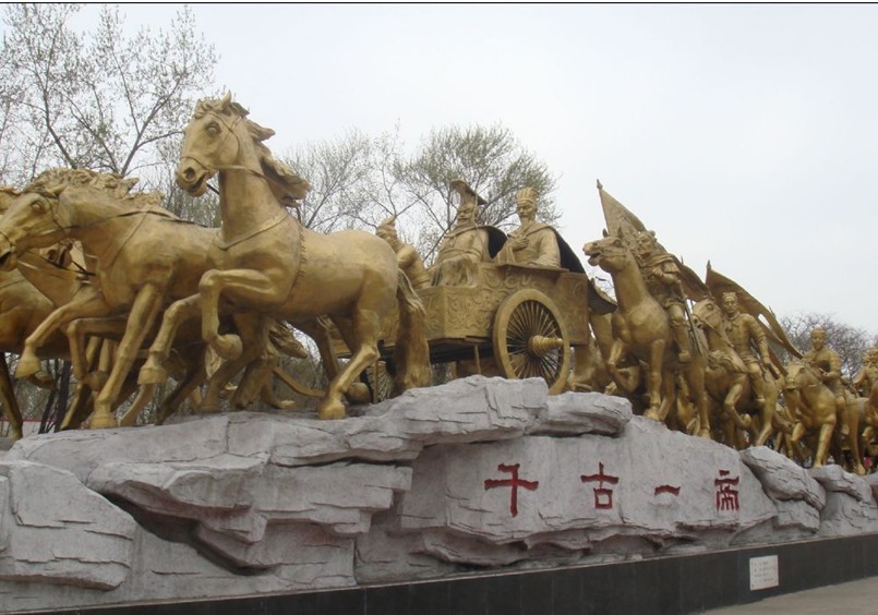 公元前221年秦始皇統(tǒng)一中國后,曾先后五次出巡,其中公元前215年第三次東巡到碣石,派燕人盧生求羨門高誓,命大臣李斯刻“竭石門辭”,即矗立海邊的喝石刻石。重刻的稿石系采用花崗巖自然石塊,高約5.1米,寬2.9米,厚2米。始皇一生喜愛巡游,在他統(tǒng)治全國后的十余年里;曾五次出巡“親巡天下,周覽遠方”。秦始皇每次出巡時,都有隆重的車仗和龐大的車隊,場面非常壯觀,現(xiàn)在大家所看到的這組群雕以秦始皇出巡時聲勢浩大的歷史場面,用生動、形象的始皇像、車馬及人物造型,再現(xiàn)了秦始皇華夏一統(tǒng),千古一帝的風(fēng)采,它是由32個人、2 0匹馬、2輛車組成的,此群雕長40米、寬5米、高6.6米,是景區(qū)繼秦始皇巨型雕像之后的又一個標(biāo)志性建筑。求仙苑內(nèi)百草叢生,百花爭艷,古碑林立;秦皇井、祈壽亭、升仙臺等源于美麗、神奇的傳說;望海長廊是為秦皇求仙入海的童男童女的親人眺望、祈盼的場所;凄美的歷史讓人回味。配以碧清的湖水,白色的亭廊,構(gòu)成了一幅水陸相連的美麗圖畫。闕門產(chǎn)生于西周時期,秦漢時代在城門、宮殿前或祠廟前都建有闕門。據(jù)說闕門是“天子號令賞罰所由出也”,也就是懸掛法令、布告用以昭示國人的地方,而祠廟、居室前的闊是“裝飾、別尊卑”,就是說:闕是一種標(biāo)志,表明宮殿、居室、神祠及墳?zāi)沟姆秶顺嫉酱吮仨毭C然起敬。