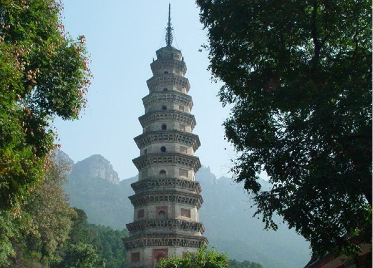 “辟支”出于佛教,音譯為“辟支迦佛陀”,略稱“辟支佛”,辟支塔,意即辟支佛塔。辟支塔為一座八角九層樓閣式磚塔,塔高55.7米,塔基為石筑八角,上有浮雕,鐫刻有古印度孔雀王朝阿育王皈依佛門等故事。塔身為青磚砌就,各層皆施腰檐,下三層為雙檐,二至四層檐下置平座。塔檐與塔徑自下而上逐層遞減,收分得體。塔內(nèi)一至四層設(shè)塔心柱,內(nèi)辟券洞,砌有臺階,可拾級而上,自第五層以上砌為實(shí)體,登塔須沿塔壁外腰檐左轉(zhuǎn)90度進(jìn)入上層門洞。塔身上置鐵質(zhì)塔剎,由覆缽露盤、相輪、寶蓋、圓光、仰月、寶珠組成,自寶蓋下垂八根鐵鏈,由第九層塔檐角上的八尊鐵質(zhì)金剛承接,在塔內(nèi)延續(xù)到地下,起避雷作用。辟支塔氣勢雄偉、造型美觀、結(jié)構(gòu)復(fù)雜、比例適當(dāng),呈典型的宋代風(fēng)格,為靈巖寺標(biāo)志性建筑。宋代文學(xué)家曾鞏有詩贊曰“法定禪房臨峭谷,辟支靈塔冠層巒”。