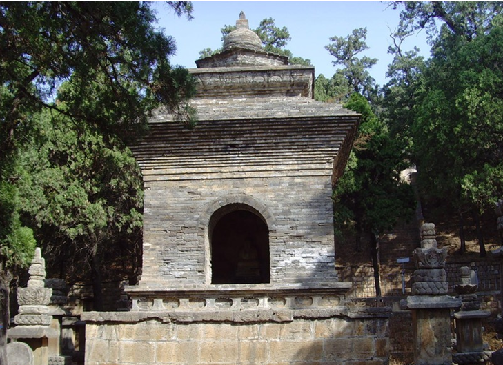 墓塔林中部為一南北甬道,其北端建有磚石結(jié)構(gòu)、單層重檐式北魏祖師塔(法定墓塔),甬道兩側(cè)列峙全石結(jié)構(gòu)群塔,依塔身形制分為方碑形塔、鐘形塔、鼓形塔、穿堵婆塔(喇嘛塔)、經(jīng)幢式塔、亭閣式塔六種。