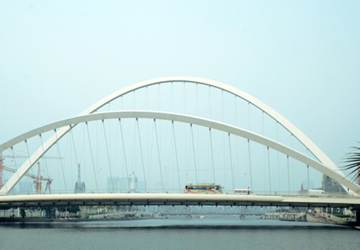 海河風(fēng)景線,始于三岔口,止于大光明橋,橫穿繁華的天津市區(qū)。它宛如一幅長長的風(fēng)景畫卷,景色包含美麗的海河公園、聞名于國內(nèi)外的望海樓教堂、雄偉壯觀的“老龍頭火車站”--天津站……但它最讓眷戀的卻是夜幕降下之后,海河流水閃爍的波光燈影的美,流動不息的美。那兩岸若明若暗的各色燈光,倒映在河中,浮如絢麗的彩霞,緩緩的流水,又把一道道彩霞送向遙遙的遠方,使人們產(chǎn)生無限的遐思。在天津,有“七十二沽”之稱,海河還被一些人稱作“沽水”。于是,“沽水流霞”就這樣傳開了。