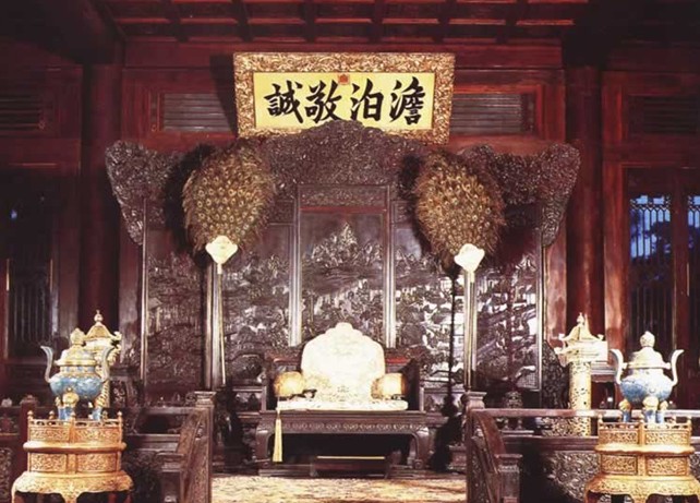 乾隆皇帝所題的“四知”一語(yǔ)出于《易經(jīng)》。因《易經(jīng)》中說(shuō)“君子知微、知彰、知柔、知?jiǎng)?,萬(wàn)夫之望。”乾隆皇帝對(duì)此話十分贊賞,因?yàn)榍『帽磉_(dá)了他剛?cè)嵯酀?jì)、恩威并施的統(tǒng)治策略。皇帝上朝前后,在這里更衣,有時(shí)也在此召見(jiàn)王公大臣和少數(shù)民族首領(lǐng)。萬(wàn)歲照房和配房展出了一些稀世珍品,版權(quán)所有山東聊城聊之旅國(guó)際旅行社有限公司,轉(zhuǎn)載必究!主要有御用官窯瓷器、琺瑯器、帝后車輿和石鼓。