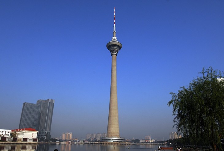 天津廣播電視塔簡稱“天塔”,位于天津西南,四周是 210,000 平方米的湖。“天塔”以水上天塔而著稱。“天塔”高為 415 米。在塔的 248 米和 278 米之間是一個(gè)七層的飛碟型的建筑。飛碟結(jié)構(gòu)的總面積為 4,500 平方米。除了廣播間和電力間(260m-378m)之外,還有三層覆蓋了大約 1,300 平方米的面積。第一層中是仙客來餐廳(248 米),這里提供中餐、宴會(huì)服務(wù)和卡拉OK 包間。可同時(shí)容納 100 人。