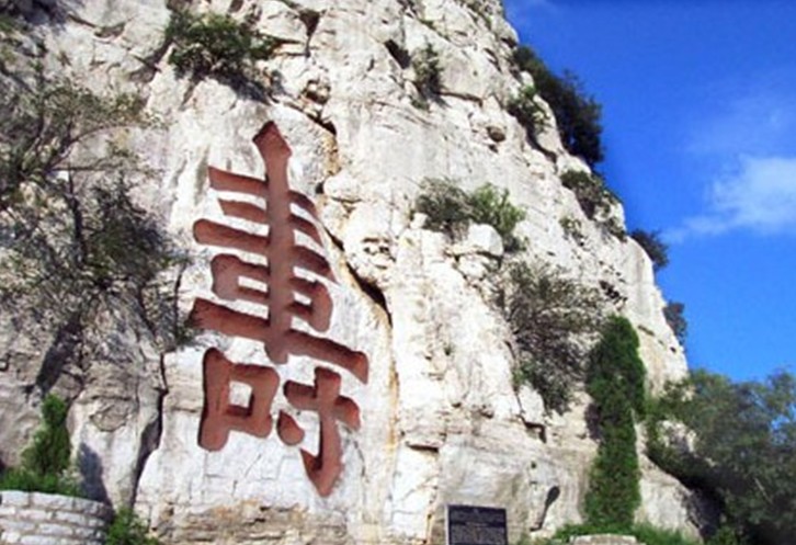 山腰處是“望壽閣”,原為元朝時(shí)期的“靈官廟”,后毀于戰(zhàn)火,1984年重修。因這里與山頂?shù)?ldquo;壽”字遙遙相望,于是更名為“望壽閣”。閣內(nèi)的正殿建于懸崖之上,高大宏偉,古樸壯觀,正門匾額上書“望壽閣”三個(gè)大字,為著名書法家啟功 題寫。殿內(nèi)供奉福、祿、壽三星,東西兩邊的廂房里供奉關(guān)公和財(cái)神,許多游客喜歡在此進(jìn)香拜神,希冀自己和家人一生平安,萬事如意。