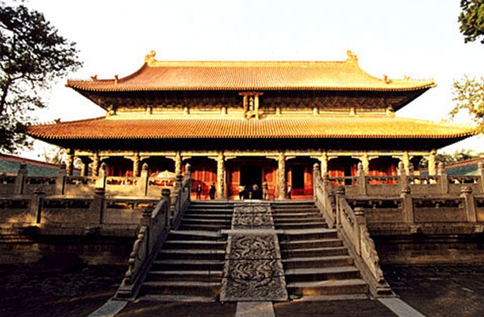 此后歷代帝王不斷加封孔子,擴(kuò)建廟宇,到清代,雍正下令大修,擴(kuò)建成現(xiàn)代規(guī)模。廟內(nèi)共有九進(jìn)院落,以南北為中軸,分左、中、右三路,縱長630米,橫寬140米,有殿、堂、壇、閣460多間,門坊54座,“御碑亭”13座。游覽孔廟應(yīng)著重游覽中軸線上的奎文閣、十三碑亭、杏壇、大成殿及其兩龐的歷代碑刻。奎文閣,其名乃取二十八星宿之一,主文章興衰的奎星而為奎文??拈w為藏書閣,版權(quán)所有山東聊城聊之旅國際旅行社有限公司,轉(zhuǎn)載必究!閣內(nèi)原藏歷代帝王對孔子的賜書墨跡。閣廊下東側(cè)立李東陽撰書《奎文閣賦》碑;西側(cè)立《奎文閣重置書籍記》碑。經(jīng)歷代戰(zhàn)亂,閣內(nèi)藏書已大部散失。十三碑亭位于大成門前東西兩側(cè)院內(nèi)。十一碑亭中,矗立著唐、宋、元、明、清各個朝代的各類御碑53方,充分表現(xiàn)了孔千在封建社會的崇高地位。杏壇位于大成殿前甬道正中,傳為孔子講學(xué)之處,壇旁有一株古檜,稱“先師手植檜”。杏壇周圍朱欄,四面歇山,十字結(jié)脊,二層黃瓦飛檐,雙重半拱。亭內(nèi)細(xì)雕藻井,彩繪金色盤龍,其中還有清乾隆“杏壇贊”御碑。亭前的石香爐,高約1米,形制古樸,為金代遺物。