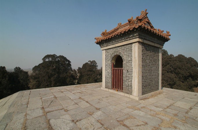 上懸乾隆手收“金德貽祥”匾額。享殿后為少昊陵,底大上小,呈梭臺(tái)形,狀如金字塔,陵墓闊28.5米,坡高15米,頂方11米,陵墓表面為石板砌筑。陵頂筑有小廟一座,內(nèi)供漢白玉石雕少昊像,為宋宣和時(shí)遺物。陵神道南約50米處,有宋代為少昊之父軒轅黃帝而建的景靈宮遺址。側(cè)有“萬(wàn)人愁”石碑,碑高7.05米,寬3.76米,厚1.2米,下有龜趺,共重約140噸,為國(guó)內(nèi)罕見,碑無字,傳說為北宋宣和時(shí)建。