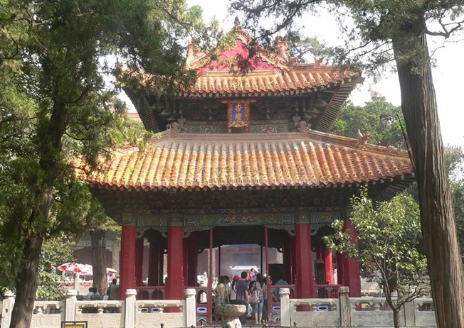 杏壇是孔子教育光輝的象征,位于大成殿前甬道正中,傳為孔子講學(xué)之處,壇旁有一株古檜,稱“先師手植檜”。杏壇周圍朱欄,四面歇山,十字結(jié)脊,二層黃瓦飛檐,雙重半拱。亭內(nèi)細雕藻井,彩繪金色盤龍,其中還有清乾隆“杏壇贊”御碑。亭前的石香爐,高約1米,形制古樸,為金代遺物。版權(quán)所有山東聊城聊之旅國際旅行社有限公司,轉(zhuǎn)載必究!該壇建于宋代,四周環(huán)植以杏,故名;金代又于壇上建亭。明代后期重修,即今日杏壇。
