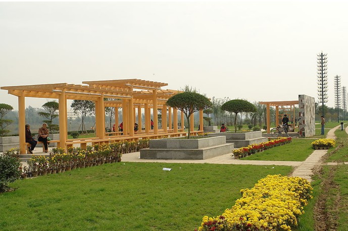濱河路景觀綠化工程在充分保護(hù)和利用原有林草植被的基礎(chǔ)上,大量引種優(yōu)良樹(shù)種,銀杏、金絲垂柳、金枝國(guó)槐、雪松、欒樹(shù)、紫薇、櫻花、榆葉梅、珍珠梅等樹(shù)種紛紛落戶(hù)沂河兩岸,讓濱河景區(qū)成為“一河青水、兩岸綠色、三季花香,四季常青”的植物王國(guó)。濱河路的綠化景觀,就像一條綠色的飄帶,沿沂河河岸穿城而過(guò),無(wú)論是游人如織的白天還是華燈綻放的夜晚,都以她迷人的風(fēng)采吸引著人們的腳步和目光。