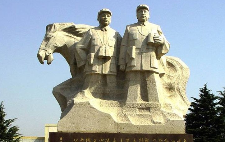 紀念館前面是陳毅元帥、粟裕將軍侍馬而立的大型花崗石塑雕,雕像高7.75米,其中底座高2.75米,紅色花崗巖上鐫刻著陳毅元帥的《孟良崮戰(zhàn)役》長詩,兩位將帥雕像栩栩如生,再現(xiàn)了當年作為孟良崮戰(zhàn)役主要指揮者的光輝形象。紀念館后面是烈士墓地,墓地正中是粟裕將軍骨灰撒放處,其后是烈士英名塔,塔身鐫刻著在孟良崮戰(zhàn)役中犧牲的2800多名烈士的姓名,墓區(qū)內(nèi)掩埋著2800多名烈士的遺骨。