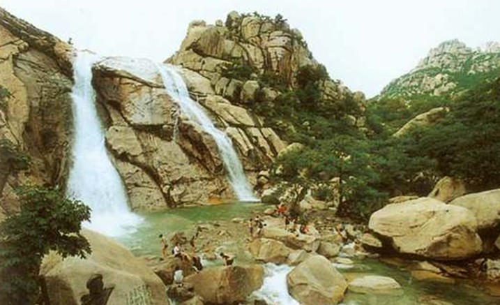 又稱玉龍瀑。在嶗山南部八水河中游,北距上清宮約1公里。周圍巖壁峭立,八水河至此,沿20米高、10余米寬的絕壁懸空倒瀉,噴珠飛雪,狀如玉龍飛舞。瀑布落下十幾米,與石壁相擊,分?jǐn)?shù)股跌入潭中。碧水凝寒,清澈見底,潭旁巨石上鐫“龍?zhí)镀?rdquo;三字。大雨過后,山洪暴注,飛騰叫嘯,更為壯觀,故有“龍?zhí)秶娪?rdquo;之稱。周至元有詩贊曰:“凌空亂濺沫,疑是玉龍飛。白掛虹千仞,青山環(huán)一圍。拋來珠落落,舞處雪霏霏。游客貪清賞,斜陽不忍歸。”