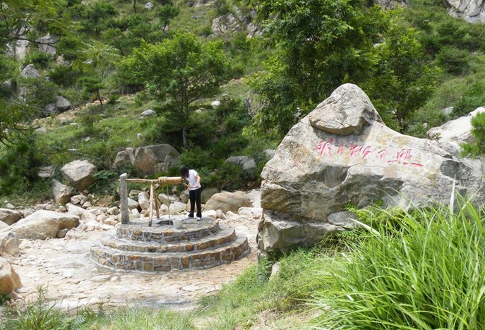 河山怪石嶙峋,峰側(cè)斷崖似刀削斧劈。沿南麓崎嶇小徑可攀登向上,一路風(fēng)光,目不暇接。首先看到的是后時(shí)家官莊村民和石匠共同于民國(guó)七年立的“開(kāi)山碑”。碑文:“以此碑為界,碑界以下不準(zhǔn)開(kāi)石,如有犯者,重加處罰。”以此可見(jiàn),維持原貌,保護(hù)生態(tài)環(huán)境,在河山早就引起重視并立有戒約。前人立碑為規(guī),至今絲毫未犯,這樣有效的鄉(xiāng)規(guī)民約的確令人欽佩。