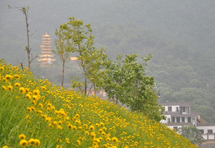 太陽(yáng)山東南兩面向海,西北兩面環(huán)山。南可見(jiàn)海上飄渺前三島(或許是海上三仙山的原型),北可望歷史古港瑯琊臺(tái),碧海藍(lán)天,大美不言,山清水秀,靈氣自生,四方清靜,八面臨風(fēng),山海天一覽無(wú)余,大千之美盡收眼底。