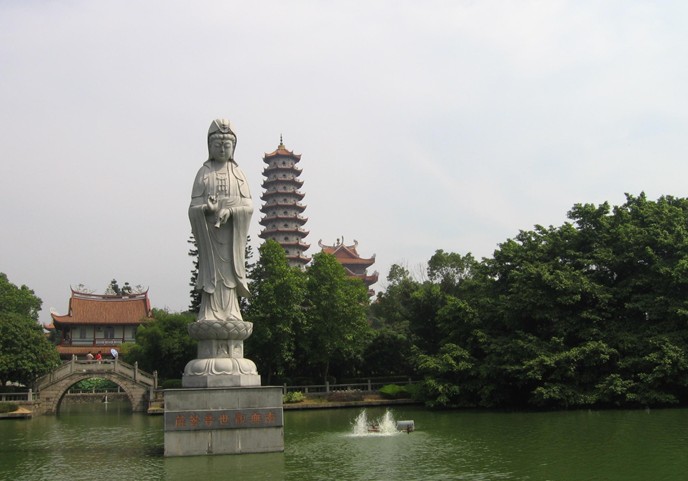 西禪寺名列福州五大禪林之一,為全國重點(diǎn)寺廟,位于西郊怡山之麓,在工業(yè)路的西邊,比鄰于福州大學(xué)的南側(cè),巍峨而壯觀。門票20元、學(xué)生票10元。古剎大門坊柱上鐫刻一副楹聯(lián):“荔樹四朝傳宋代,鐘聲千古響唐音。”這是清代周蓮撰寫的聯(lián)句,點(diǎn)明"西禪寺"是唐朝的古寺。