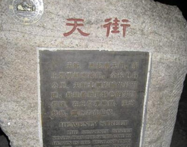 進(jìn)了南天門(mén)再上兩層臺(tái)階就是天街,天街自古以來(lái)就似懸在天上的一條街市。古代的香客,現(xiàn)在的游人都對(duì)這條街存有深刻的印象。在長(zhǎng)約千米的天街上布滿了賓館、飯店、商鋪。據(jù)記載,天街從清代就開(kāi)始繁華,當(dāng)時(shí)的一些店鋪老板用實(shí)物作為招牌,如“棒槌”、“木碗”、“鸚鵡”等。