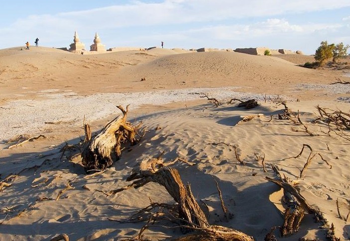 黑城市北方的西夏國古都,名叫亦即乃,就是黨項語的黑水城黑城平面為長方形,現(xiàn)今城墻仍高聳地表達10米城內的街道和墻壁及整齊排列的木頭檐柱,從流沙中露出。城外西南方,一座穹坊廬式頂、壁龕樣式的禮拜堂完整地矗立于荒野,土坯建成的圓頂清真寺尚未被風沙掩埋。城外西南一座禮拜堂完整屹立于荒野,近代有不少人來多次探寶,掠奪走了大量的珍貴文物,在黑城出土的不少珍貴的歷史材料中,在出土的《番漢合時掌中珠》西夏文字典中,人們解讀了西夏文。給后人更完整的詮釋了神秘的西夏國。該城建于公元九世紀的西夏政權時期。公元1372年明朝大將馮勝攻破黑城后遭廢棄。至今城內還埋藏著豐富的西夏和元代等朝代的珍貴文書。近年來,由于周邊地區(qū)沙化嚴重,流沙從東、西、北三面侵蝕黑城,許多遺址已埋于沙下。文物保護工作者呼吁有關部門盡快行動起來,搶救性保護黑城遺址。黑城遺址的城墻西北角頂部筑有5座佛塔,保存至今尤為珍貴,但同樣面臨風蝕坍塌的危險。