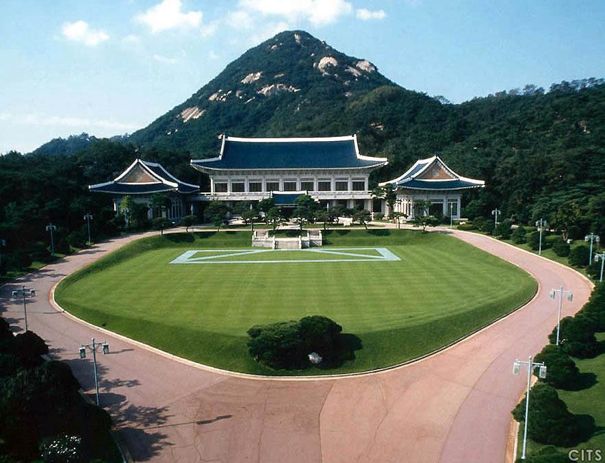 青瓦臺(tái)是韓國(guó)總統(tǒng)官邸,位于首爾市鐘路區(qū)世宗路一號(hào)。 青瓦臺(tái)原是高麗王朝的離宮,1426年朝鮮王朝建都漢城(首爾)后,把它做為景福宮后園,修建了隆武堂、慶農(nóng)齋和練武場(chǎng)等一些建筑物,并開了一塊國(guó)王的親耕地。