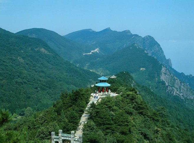 日觀峰,山東游覽名勝。位于玉皇頂東南,古稱介丘巖,因觀日出而聞名。觀日長廊全長30米,亭廊銜接,似仙閣矗立,鮮艷奪目。拱北石又名觀海石。石長 6.5米,北西8度,與地面夾角30度。登臨其上可盡賞旭日東升場面。