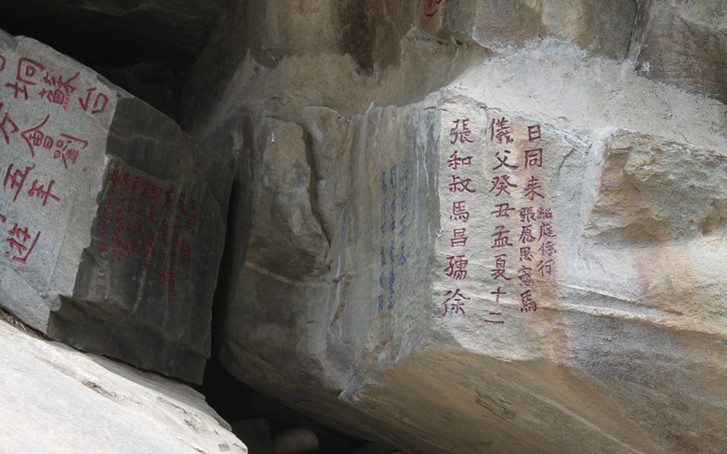 山谷流泉中的3處年代最早的石刻都是唐代的,它們均分布在石牛古洞東壁懸崖上。其中2處是唐代著名散文家,哲學(xué)家李翱任舒州刺史時游覽山谷的題名。李翱字習(xí)之,隴西成紀(jì)(今甘肅秦安)人。貞元進(jìn)士,授校書郎,后任國事博士。元和十五年以后任廬州刺史、舒州刺史,長慶二年(822年)壬寅游石牛古洞。所刻題名為“翱炅磷盤求壬寅年下元日習(xí)之書”、“挎儲弘運上卿盤長慶二年十月廿六日馀奉處交口”,均為真書,或橫排,或豎書直排。還有一處唐代13人題名石刻,系舒州刺史李德修于寶歷二年(826年)所刻。此刻楷書15行,上下豎書成行,字徑7厘米,書法遒勁渾厚。版權(quán)所有山東聊城聊之旅國際旅行社有限公司,轉(zhuǎn)載必究!據(jù)《唐書》載:李德修于寶歷時出任舒州,后任尚書,為唐代著名的文學(xué)家。