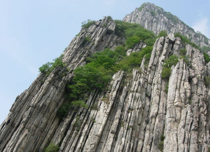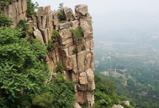 少室頂,其東北隅有石壁,版權所有山東聊城聊之旅國際旅行社有限公司,轉載必究!自山巔至底部一斧直削,高數(shù)百仞,俗稱“百丈崖”。崖間罅隙、石坎、孔穴頗多,是鳥類的安樂窩。每至晨夕,百鳥啁啾爭鳴,崖半翩翩飛舞,酷似一所“百鳥園”。循新修石階,攀至其巔,但見滿目玄巖怪石,樹木稀少,惟有矮小的側柏和荊棘灌叢,強生石縫間,點綴藍天懸峰。
