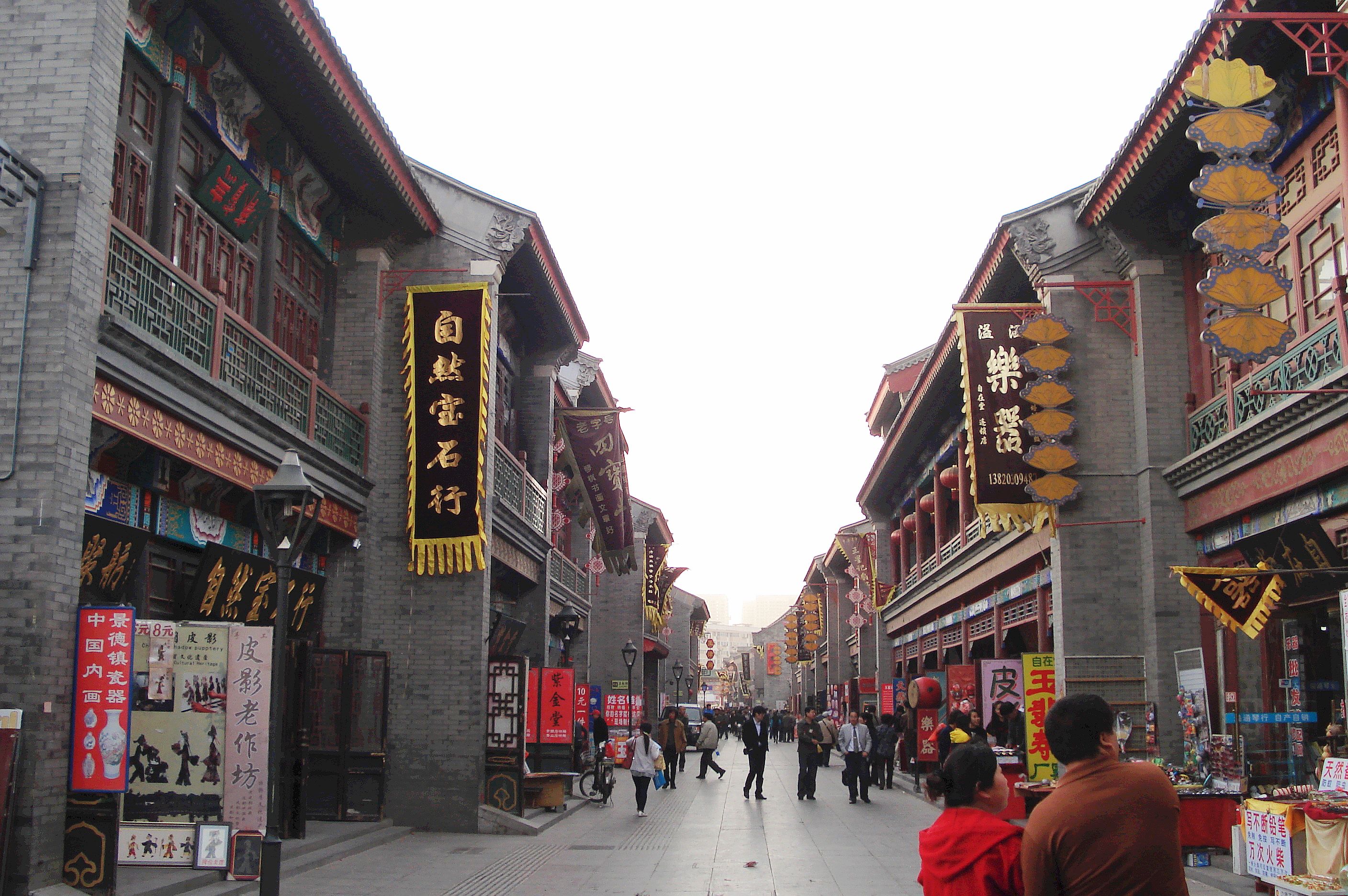 由仿中國(guó)清代民間小式店鋪組成的街道 。 以元代古跡天后宮為中心,古文化街位于天津南開區(qū)東北隅東門外,海河西岸,北至東北角,位于鬧市區(qū),起老鐵橋大街(宮北大街),東臨海河、南至水閣大街(宮南大街)。南北街口各有牌坊一座,上書“津門故里”和“沽上藝苑”,長(zhǎng)687米,寬5米,系商業(yè)步行街。這里在古代是祭祀海神和船工聚會(huì)娛樂之場(chǎng)所?,F(xiàn)已修復(fù)的古文化街包括天后宮及宮南、宮北大街。天后宮俗稱“娘娘宮”,是古文化街上的主要參觀旅游項(xiàng)目。