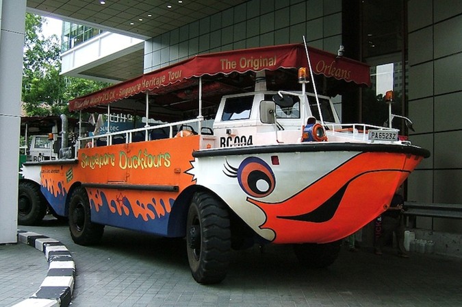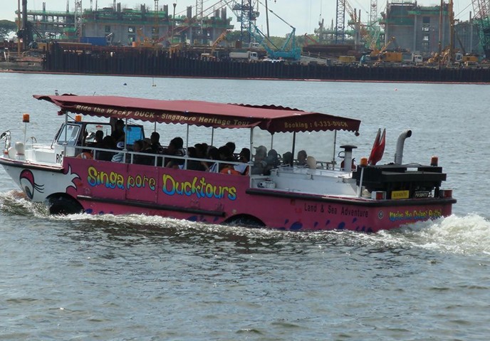“鴨子船”極受游客歡迎,香港人愛把乘“鴨子船”沿新加坡河的觀光稱為“游車河”,在新達城乘坐鴨子船,陸地將經(jīng)過世界大戰(zhàn)紀念碑,在水上欣賞薛爾思橋及魚尾獅的噴水景觀。